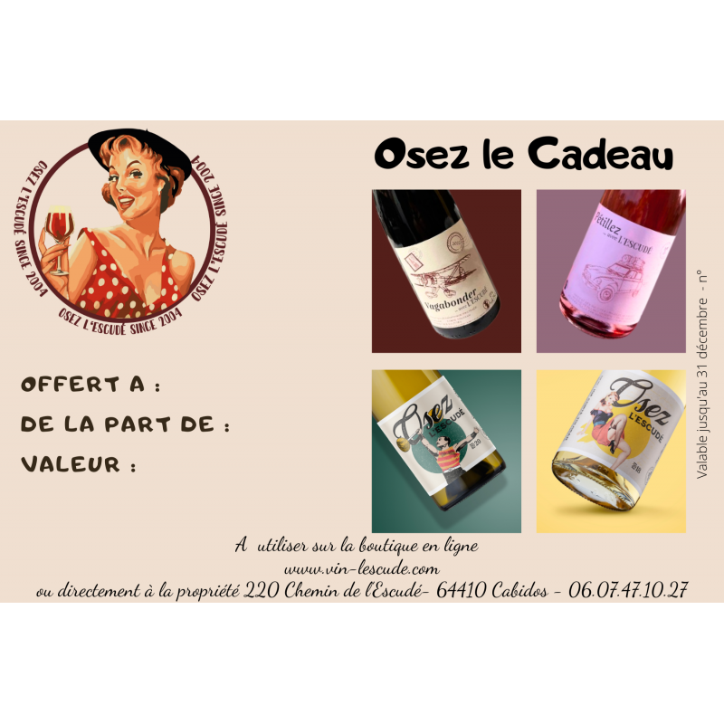 Nous vous proposons des bons cadeaux utilisables sur la boutique en ligne ou directement au chai.